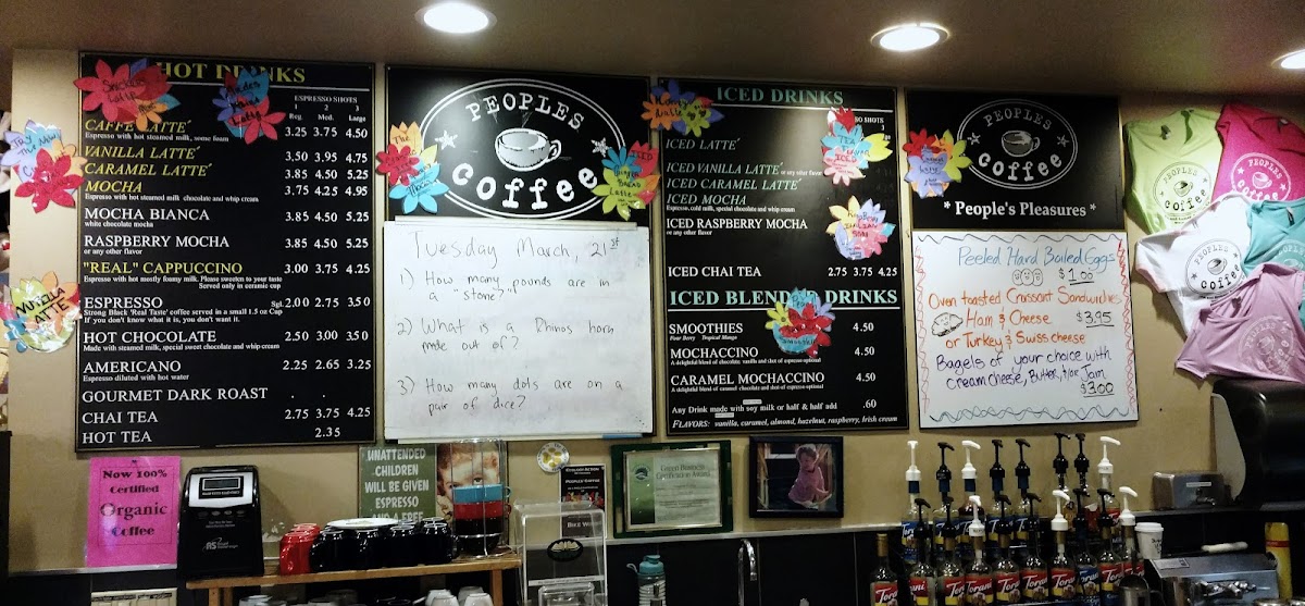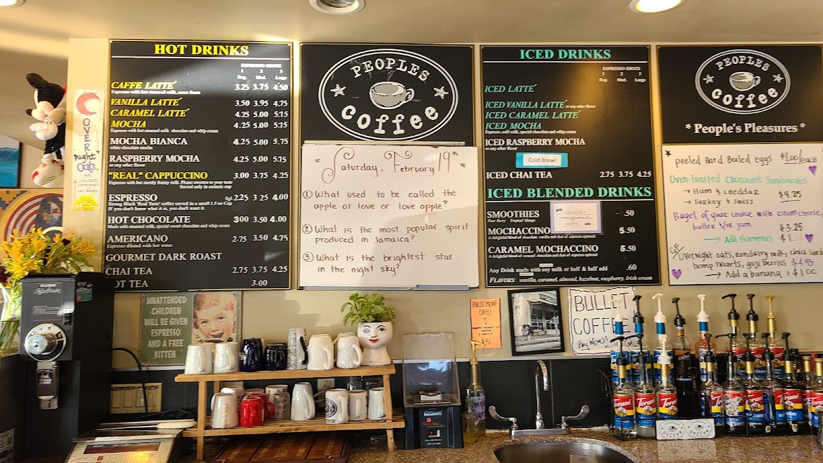 Welcome to Peoples Coffee - CA 95062, a treasure tucked away in Santa Cruz. This cozy coffee shop offers a delightful menu that caters to every palate. Starting with their invigorating Caffe Lattes and indulgent Mocha variations, there's something for everyone. The organic Smoothies are perfect post-workout, featuring vibrant flavors like Tropical Mango and Wild Berry.